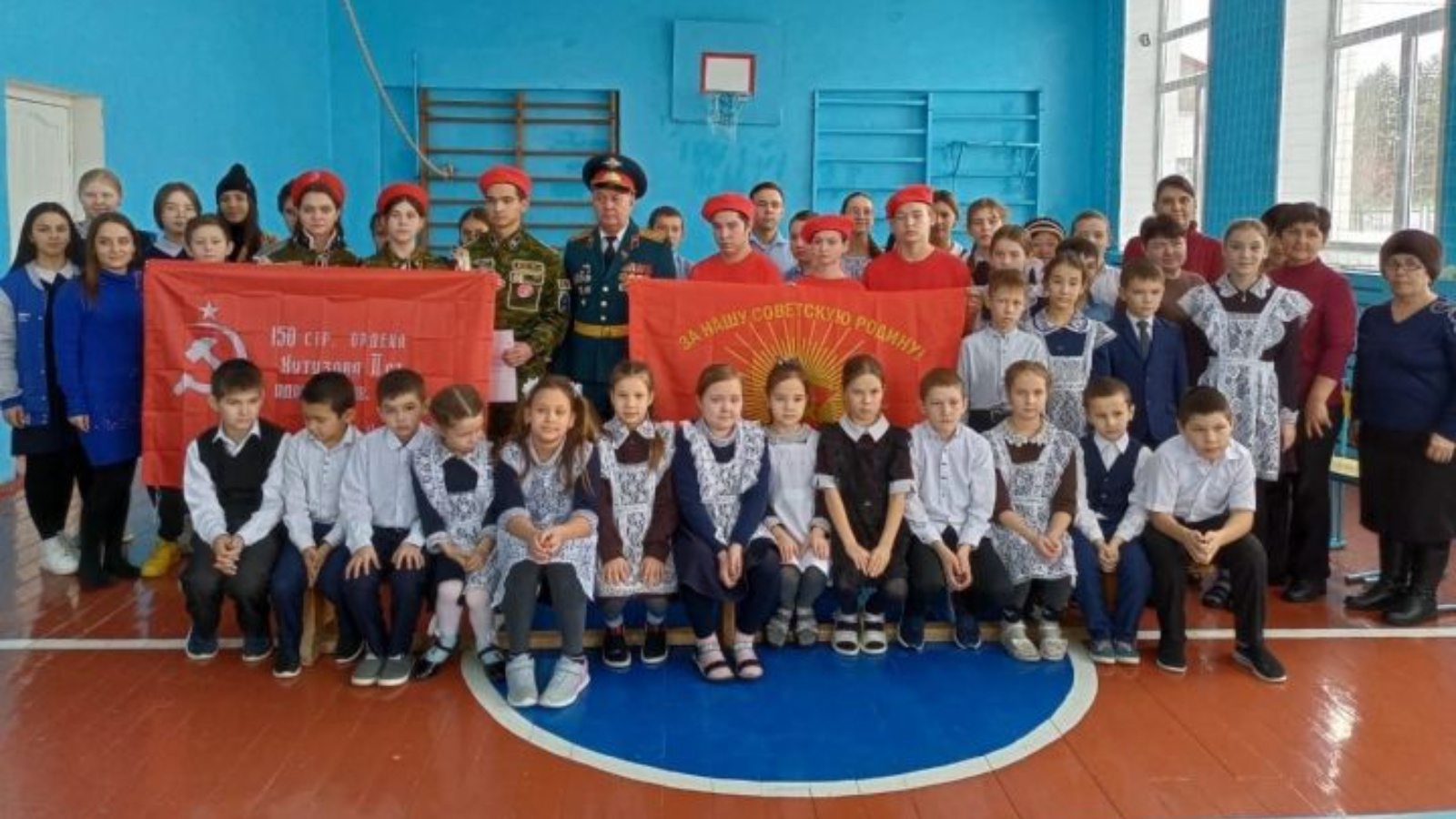 По завершению мероприятия, майор, председатель Абдуллин С. Г. от имени советских офицеров вручил школе флаг -копию «Знамени Победы».