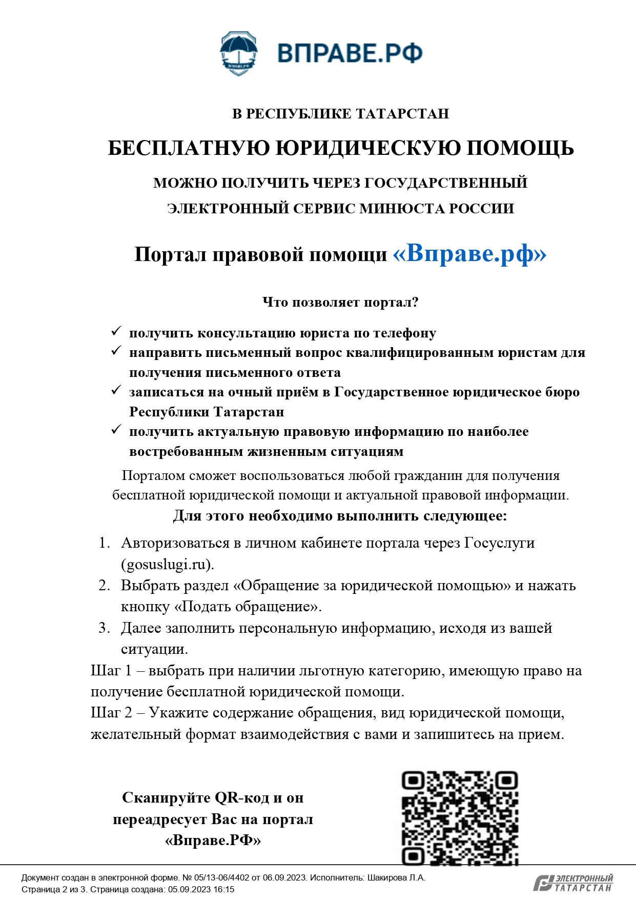 В РЕСПУБЛИКЕ ТАТАРСТАН БЕСПЛАТНУЮ ЮРИДИЧЕСКУЮ ПОМОЩЬ МОЖНО ПОЛУЧИТЬ ЧЕРЕЗ ГОСУДАРСТВЕННЫЙ ЭЛЕКТРОННЫЙ СЕРВИС МИНЮСТА РОССИИ Портал правовой помощи «Вправе.рф»