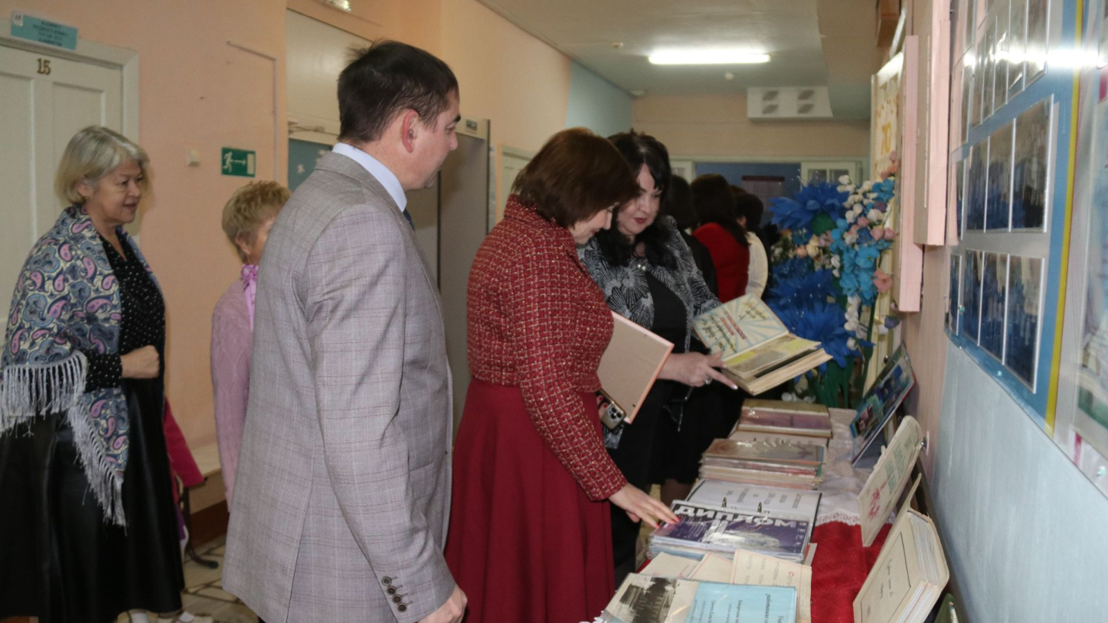 Педагоги, встречавшие гостей праздника, показали архивные фотоальбомы из школьной жизни, а также ознакомили пришедших с успехами сегодняшних учеников, демонстрируя кубки и грамоты на стене почета.