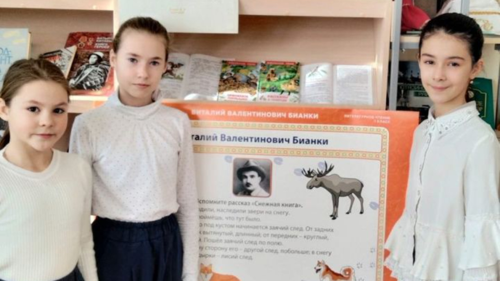 В библиотеке Уруссинской гимназии была подготовлена выставка, посвященная 130-летнему юбилею со дня рождения Виталия Бианки.