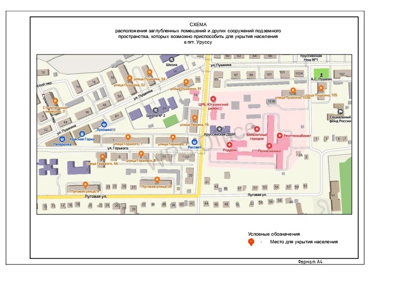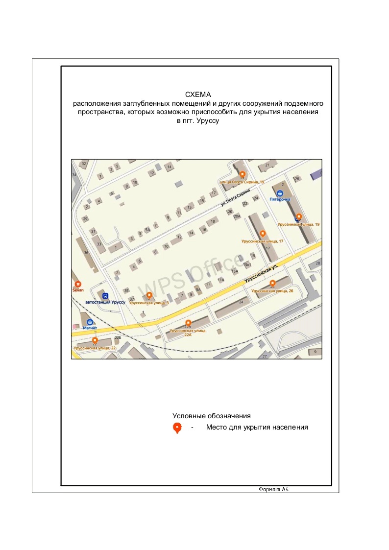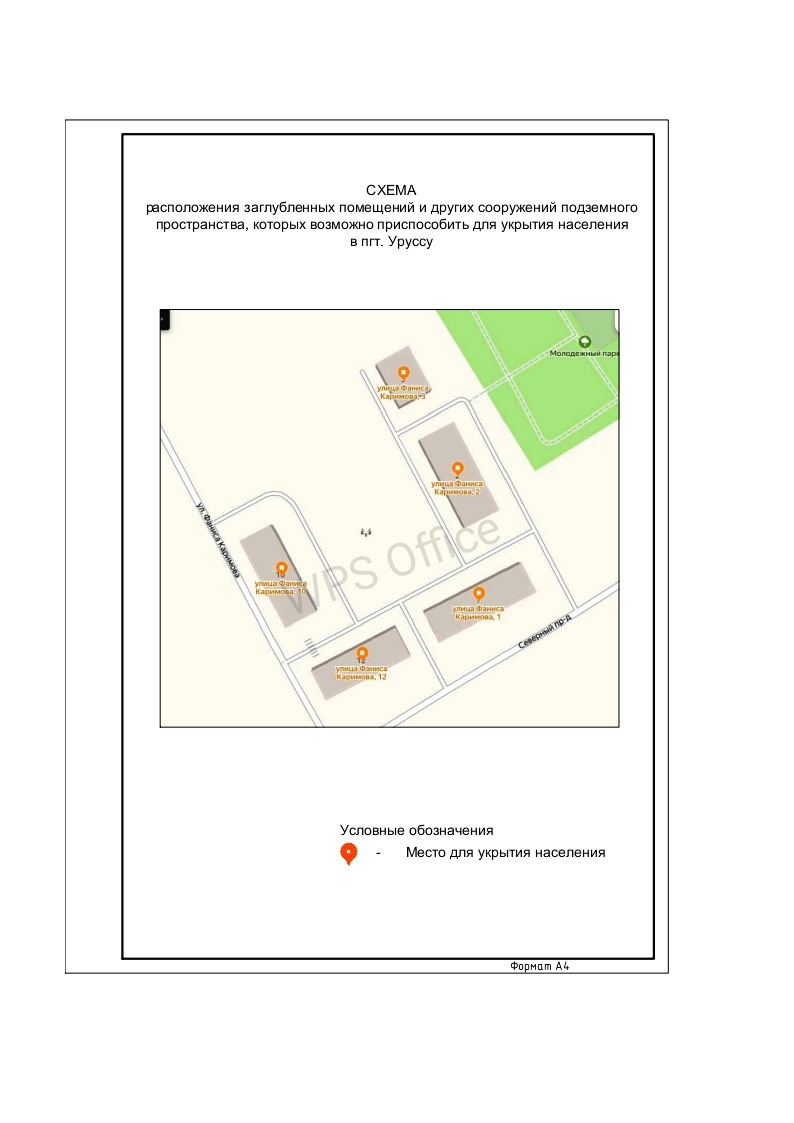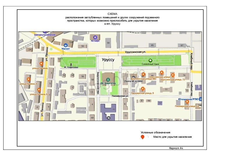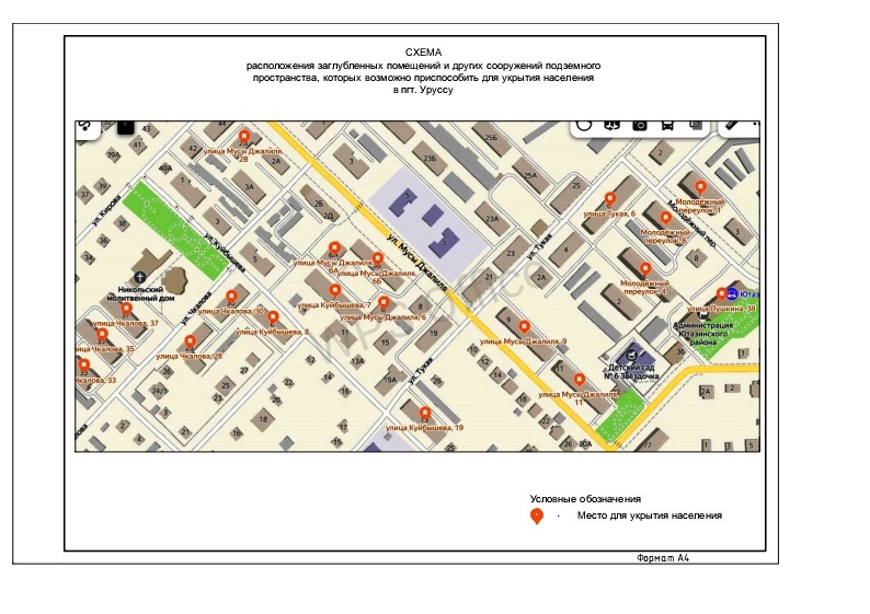 Схемы расположения заглубленных помещений и других сооружений подземного пространства для укрытия населения Ютазинского района