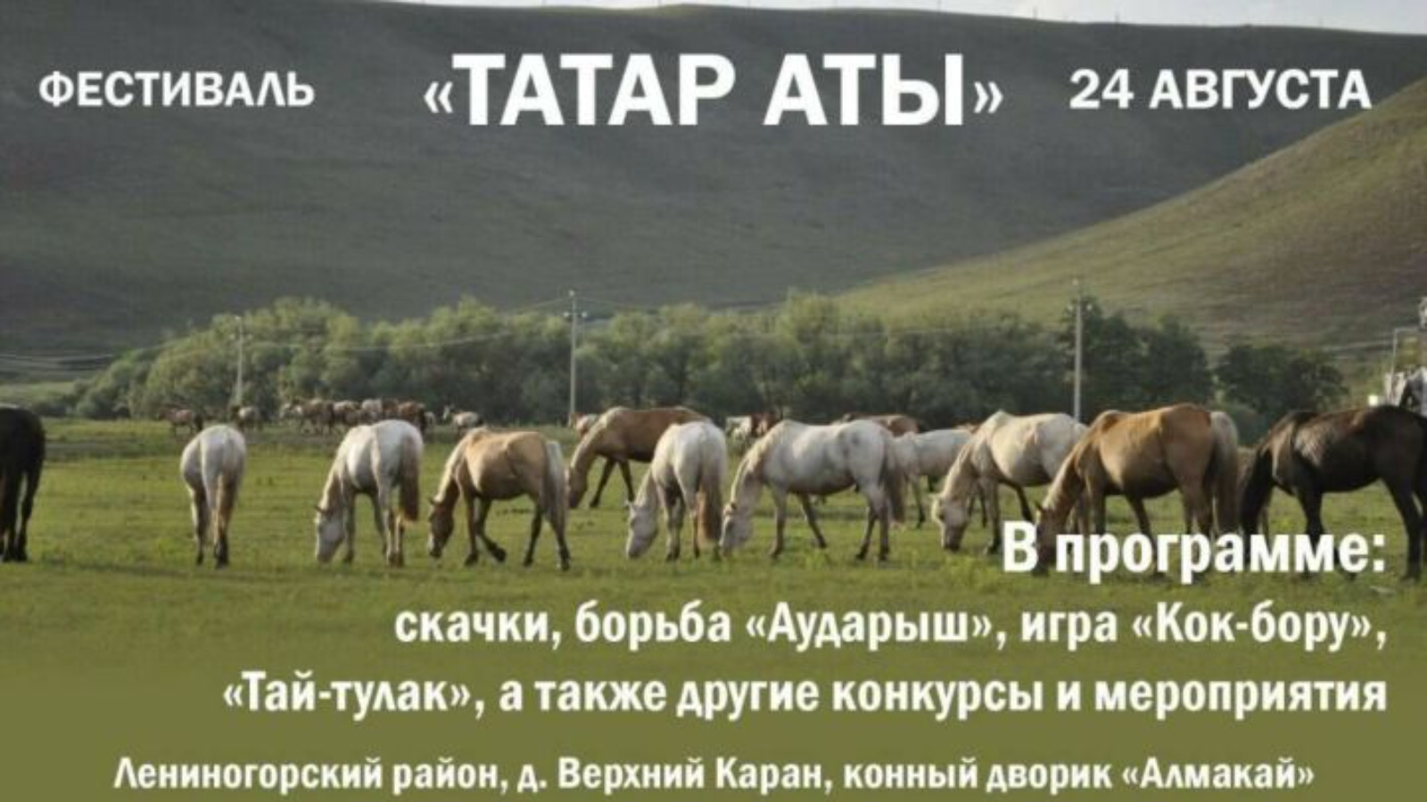 24 августа на территории конного дворика «Алмакай» в поселке Верхний Каран Лениногорского района Республики Татарстан пройдет фестиваль «Татар аты».