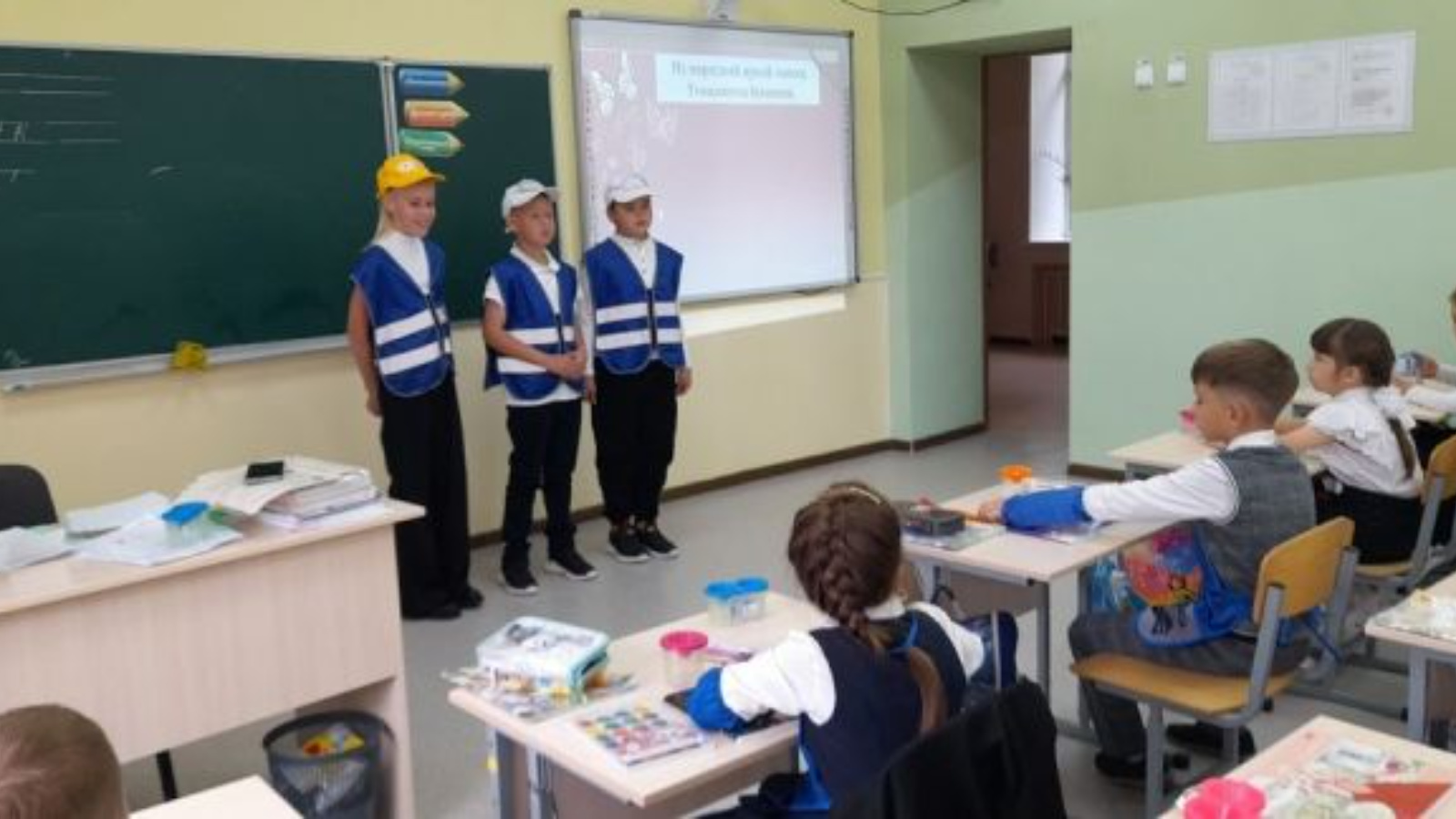В рамках недели безопасности дорожного движения участники отряда ЮИД организовали для первоклассников беседу на тему «Световозвращающие элементы на одежде».