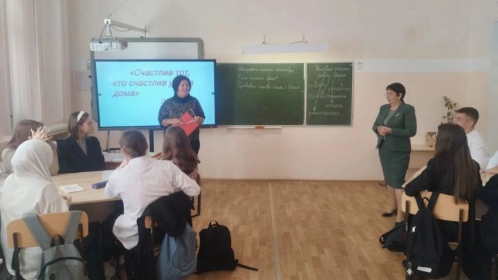 На уроке приняли участие начальник МКУ «Отдела образования» Сергей Александрович Абрамов и начальник отдела ЗАГС Гузалия Сагадатулловна Фахуртдинова.