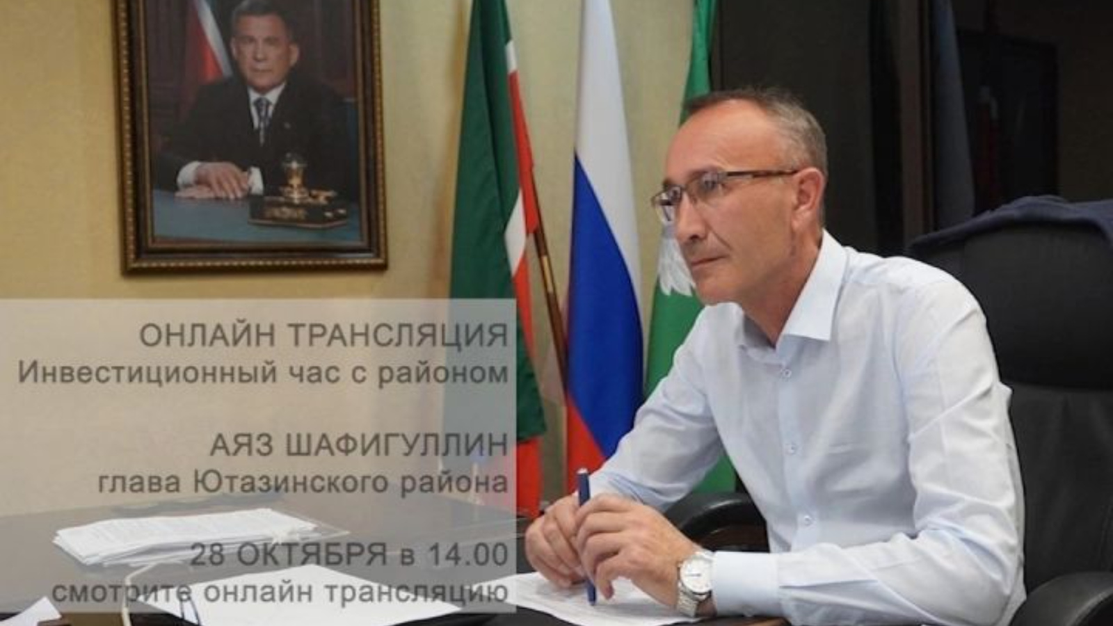 28 октября в 14:00 в Агентстве инвестиционного развития РТ в рамках встреч «Инвестиционные часы» с главами муниципальных районов выступит глава Ютазинского муниципального района Аяз Шафигуллин.