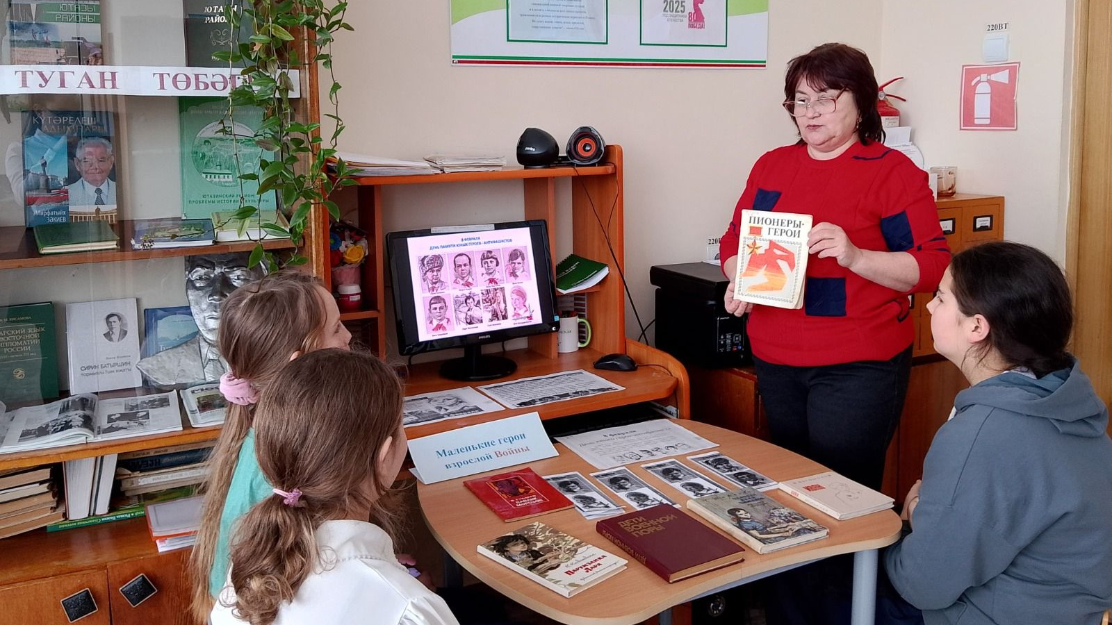 Библиотекарь рассказала ребятам о мальчишках и девчонках, которые за подвиги, совершённые в годы Великой Отечественной войны, были удостоены самой высокой награды Родины - звания Героя Советского Союза. Урок памяти сопровождался показом видео презентации «Дети-герои» и обзором книг, представленных на выставке «Маленькие герои взрослой войны». Дети познакомились с произведениями Сергея Алексеева, серией книг о пионерах-героях, сборниками о Великой Отечественной войне и другими материалами. Хочется верить, что в памяти ребят навсегда останутся имена юных солдат, с биографиями которых они познакомились на мероприятии.