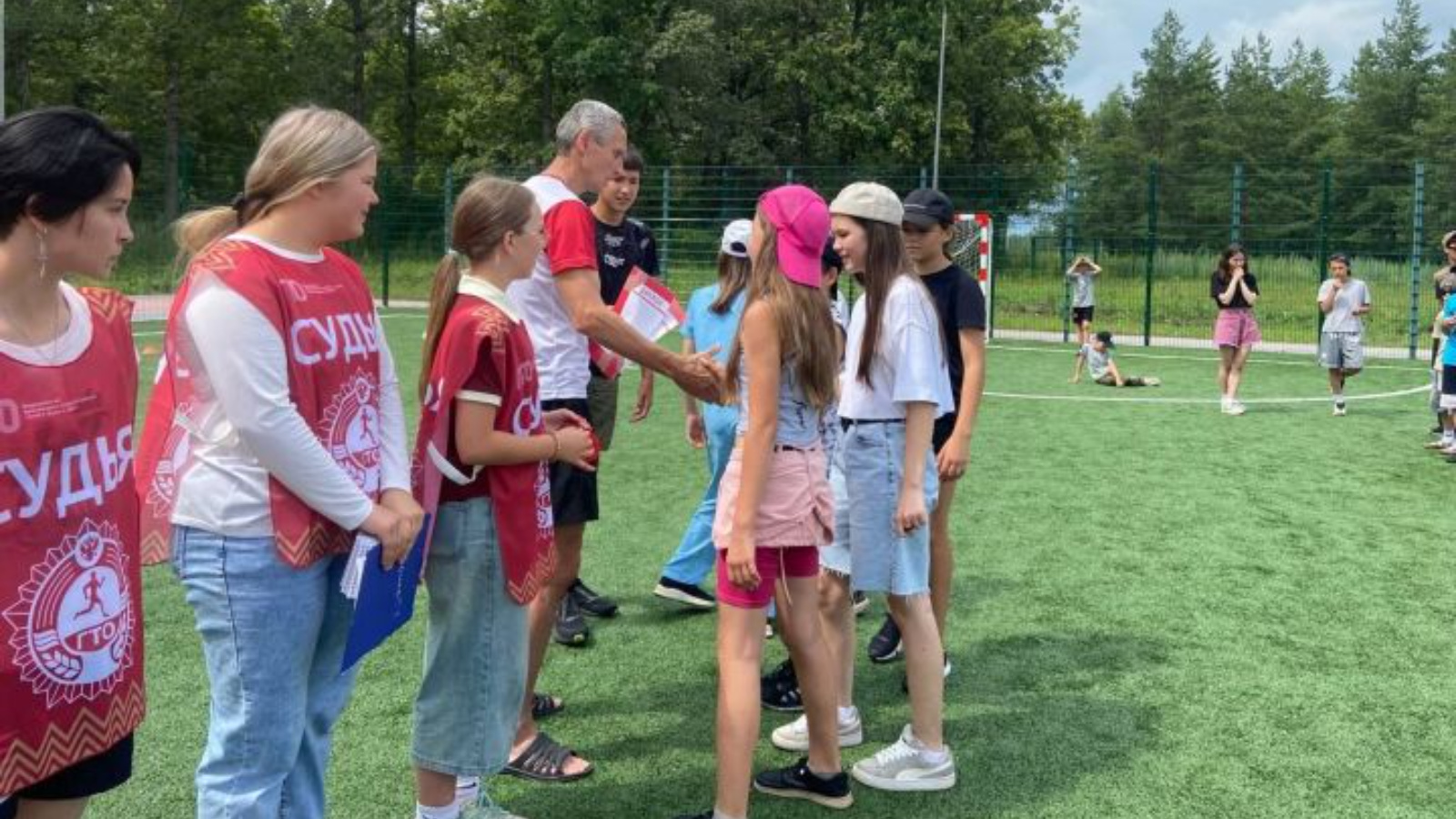 Участвовало 3 команды из 3 отрядов это :»Бригада», «Легион» и «Василек». После азартных,по накалу напряженных и очень веселых эстафет включающих в себя такие виды как « прыжки с места в длину», « отжимания в упоре лежа», «подъем туловища из положения лежа», « приседания» и «метание мяча на меткость». Победила команда»Василек»,2-«Легион и 3-«Бригада». Ребята получили огромный заряд энергии и положительных эмоций от эстафеты как участников , так и болельщиков болеющих за свои команды. Команды победители были награждены дипломами и подарками с символикой ГТО.