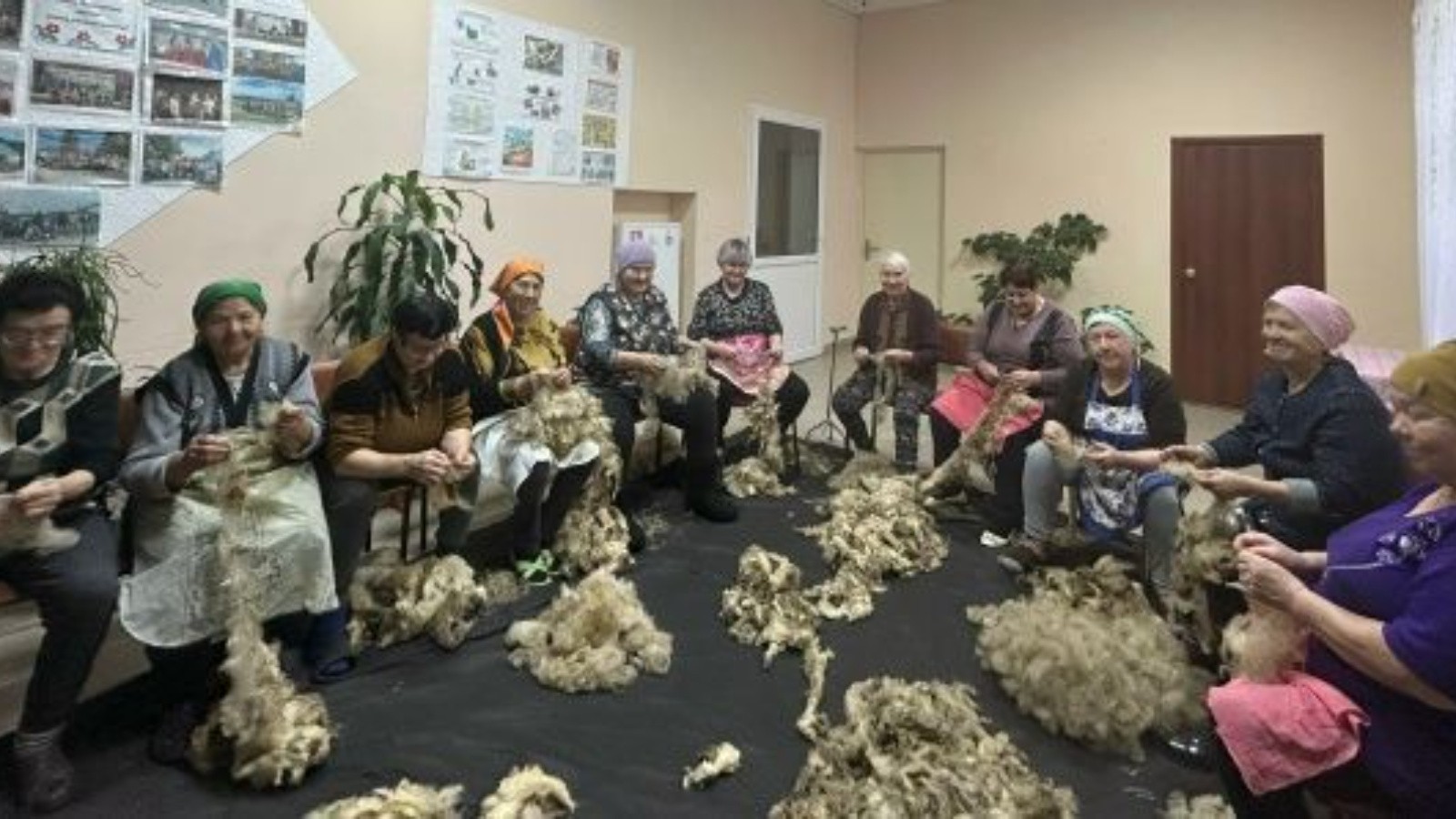 Жители села активно откликнулись на призыв. Они регулярно собираются в местном Доме культуры, где царит особая, почти домашняя атмосфера. Здесь кипит работа: женщины и мужчины обрабатывают овечью шерсть и чистят её. Это только первый этап большого дела.