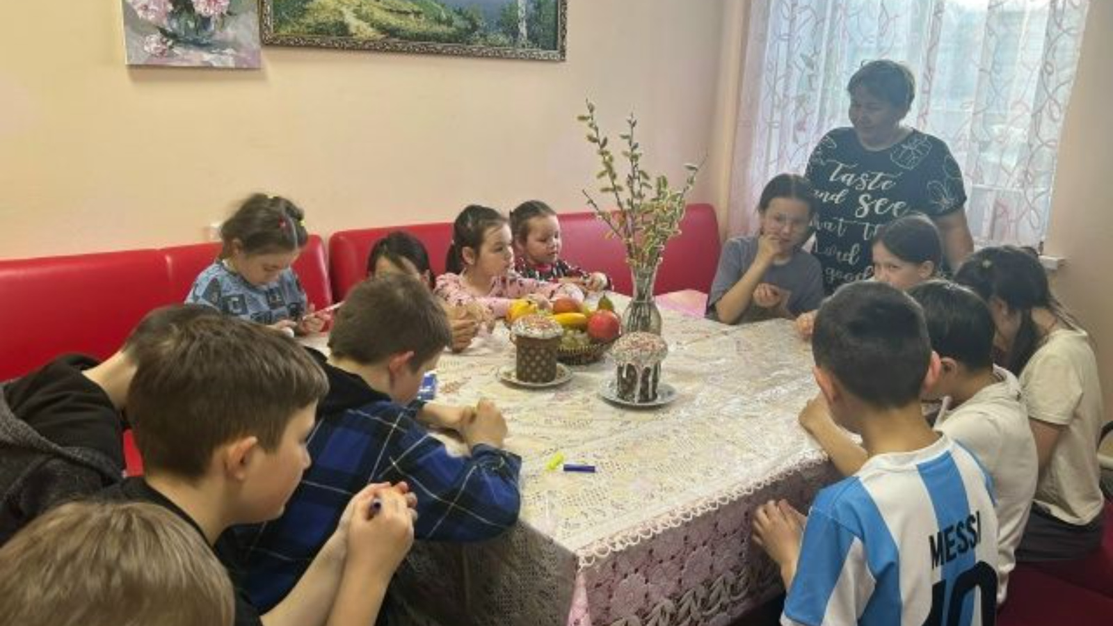 Завершился фольклорный час дружным чаепитием с куличами и сладостями. Атмосфера царила тёплая, светлая — по-настоящему пасхальная.