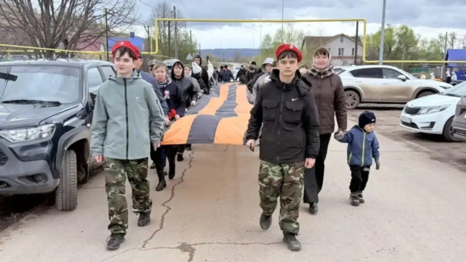 Кульминацией события стал торжественный проход жителей села с 100‑метровой Георгиевской лентой. Маршрут пролегал от дома вдовы ветерана ВОВ Мунавары Хакимовой до Сквера Памяти. В знак глубокой благодарности и вечной памяти павших участники акции почтили их минутой молчания, а затем возложили цветы к монументу.