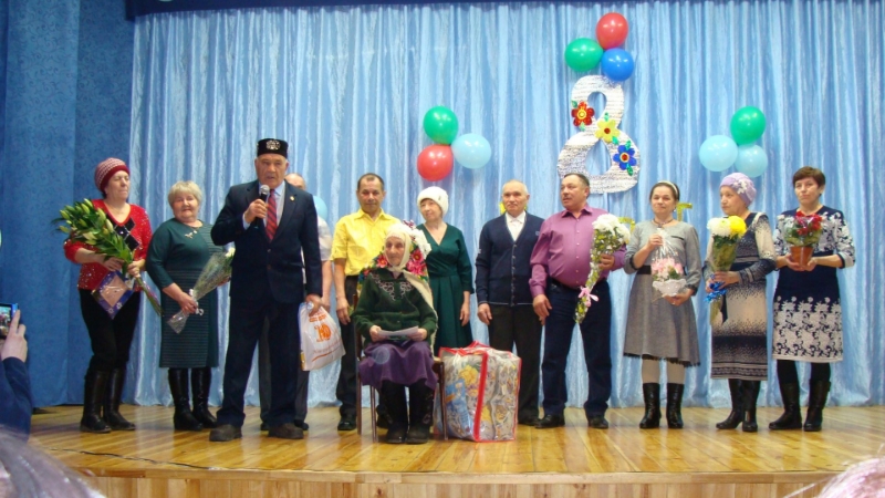 Бөтен хезмәт юлы колхоз кырларында узган юбилярны хөрмәтләү 8 март көнне җирле мәдәният йорты сәхнәсендә оештырылган бәйрәм чарасында булды. Җылы котлаулар һәм бүләкләр белән бергә Фәрхинур апа Россия Президенты Владимир Путинның котлау хатын да кабул итеп алды.