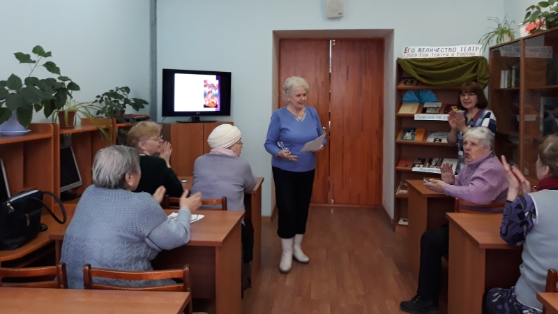Слайд-презентация ярдәмендә чарага җыелучылар театрның үсеш тарихы белән таныштылар, театр сәнгатенең гамәлдәге жанрларын искә төшерделәр һәм дөньяның иң танылган театрларына сәяхәт кылдылар. Рус театрының үсеш тарихы һәркем өчен аеруча кызыклы булды. Ә театр турында Галина Еськина һәм Резеда Ахунова башкаруында яңгыраган шигырьләр берәүне дә битараф калдырмады. Үз чыгышлары өчен алар көчле алкышлар белән бүләкләнде. Чара ахырында театр терминнары буенча "Как хорошо, что есть театр!" дип аталган викторина үткәрелде. Чара ахырында катнашучылар үзләренең тәэсирләре белән уртаклаштылар, нинди театрларга барулары турында сөйләделәр һәм быел һичшиксез театрга барырга вәгъдә иттеләр.
