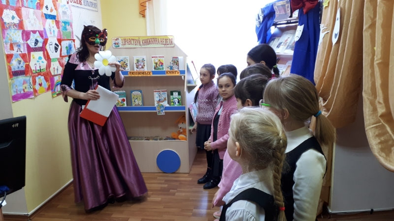 Театр элгечтән башланган кебек, әлеге чарада катнашучыларның да эшләре гардеробтан башланды. Укучылар билетлар алды, чөнки балалар китапханәсенә керү дә бу көнне, театрдагы кебек үк, катгый рәвештә билетлар алып кына рөхсәт ителде. Китапханәдә кунакларны Мельпомена - театр сәнгатен яклаучы грек музасы каршы алды. Аның слайд-презентациясе белән үрелеп барган хикәятеннән яшь китап укучылар йола уеннарыннан һәм ритуаллардан театр сәнгатенең ничек барлыкка килүен, антик чордан бүгенге көнгә кадәр аның ничек үсүен белделәр. Аннары балаларга театрның тылсымлы дөньясына сәяхәт итәргә тәкъдим ителде, анда алар «Актерлык осталыгы», «Сәхнә пластикасы», «Дикторлар конкурсы», «Театраль ромашка», «Икенче пландагы рольләр яки массовка», «Җәнлекләр хоры» кебек төрле уеннарда һәм конкурсларда катнашып, актерларның ролендә үзләрен сынап карады. Балалар барлык биремнәрне дә үтәделәр , шул ук вакытта барлык осталыкларын күрсәттеләр: шигырьләр сөйләделәр, җырлар башкардылар, пантомимнар конкурсында катнаштылар, мимика һәм ишарәләр белән әкият геройларын сүрәтләделәр, гимнастик фигуралар күрсәттеләр.