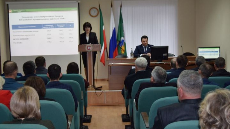Район финанс-бюджет палатасы рәисе Руфия Мөхәммәтова депутатлар һәм чакырылган җитәкчеләр, иҗтимагый оешма вәкилләре алдында 2018 елда район бюджеты үтәлеше турында доклад белән чыкты. Район башкарма комитетының Җир һәм милек мөнәсәбәтләре палатасы рәисе Руслан Рәкыйпов узган елда Җир һәм милек мөнәсәбәтләре палатасы тарафыннан башкарылган эшләргә анализ ясады. Утырышны районның контроль-исәп палатасы рәисе Римма Хафизова дәвам итте. Ул, шулай ук, үзе җитәкчлелек итә торган ведомствоның 2018 елда башкарган эшчәнлеге турында сөйләде.