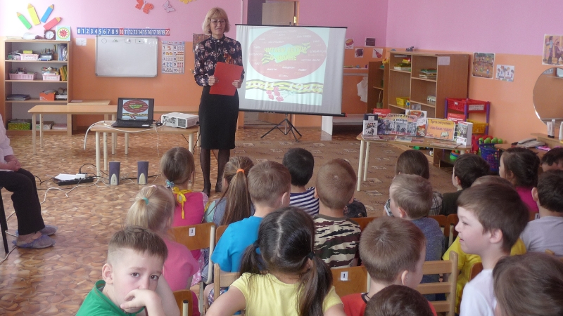 Китапханәче Илсөяр Шәрипова балаларга сугыш чоры һәм илебез Җиңү хакына түләгән кыйммәт бәя турында сөйләде, шул ук вакытта видеоматериаллар күрсәтелде, сугыш еллары җырлары яңгырады. Бакчада тәрбияләнүчеләр янына балачагы сугыш елларына туры килгән Ковалева Лидия Леонтьевна чакырылган иде, ул дошман тарафыннан оккупацияләнгән территориядә кичергән дәһшәтле еллары турында бәян итте. Кунак балаларга шушы авыр елларда исән калу өчен ниләр күрергә, ничек яшәргә туры килүен дулкынланып сөйләде. Лидия Леонтьевна шулай ук дәһшәтле елларга һәм Бөек Җиңүгә багышланган үзе иҗат иткән «День Победы», «Клянемся павшим” шигырьләрен укыды. Балалар сугыш еллары шаһиты хатирәләрен зур игътибар һәм зур кызыксыну белән тыңладылар. Аннан соң акциядә катнашучылар Радэль Вәлиев, Ангелина Афанасьева, Динара Шәймәрданова, Илдус Мөхәммәтшин да сугыш елларына багышланган шигырьләр укып узды. Акциядә катнашучылар һәлак булган җиңү солдатларын бер минутка тын калып искә алды. Әлеге чара кысаларында балаларга Константин Паустовскийның "Похождения жука-носорога» дигән хикәясе кычкырып укылды. Уку әңгәмә-диалог формасында үтте, аның барышында балалар алып баручы белән бергә йомгак ясадылар - фикер алыштылар, хикәя турында үз фикерләрен әйттеләр.