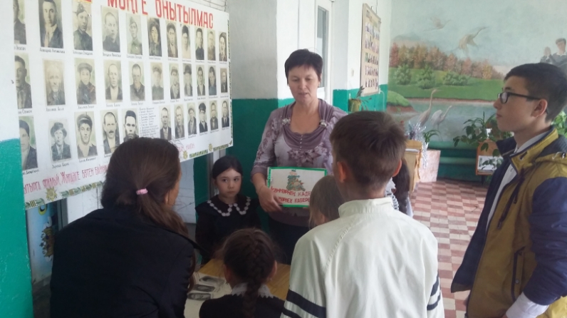 Без малайларга һәм кызларга Җиңү Көненең илебезнең барлык кешеләре өчен изге көн булып калуы һәм аның нинди югалтулар бәрабәренә яулануы турында сөйләдек. Сугыш елларындагы вакыйгалар һәм безнең өчен җир йөзендә тынычлык яулаган кешеләр турында тагын бер кат искә төшерү өчен бүген без бергә җыелуыбызны аңлаттык. Чарага килүчеләр Бөек Ватан сугышы елларында безнең күп кенә якташларыбызның югары хәрби бүләкләр алуы турында белделәр. Балалар авылыбыз кешеләре – якташ солдатлар альбомындагы хәрбиләр белән танышты.