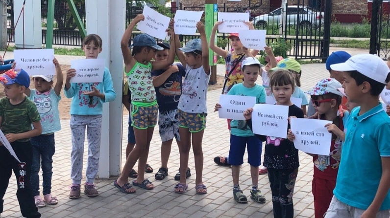 Дуслык турында мәкальләр белән таныштылар, викторинаның кызык сорауларына җавап бирделәр, анда балалар үзләренең тапкырлыкларын күрсәттеләр. Бергәләп дусларча биеделәр. Күтәренке күңел белән “Дуслык чәчәген" җыйдылар - алар кешеләрнең сыйфатлары язылган таҗлардан чын дуска хас булган сыйфатларны сайладылар һәм аларны чәчәккә беркеттеләр.