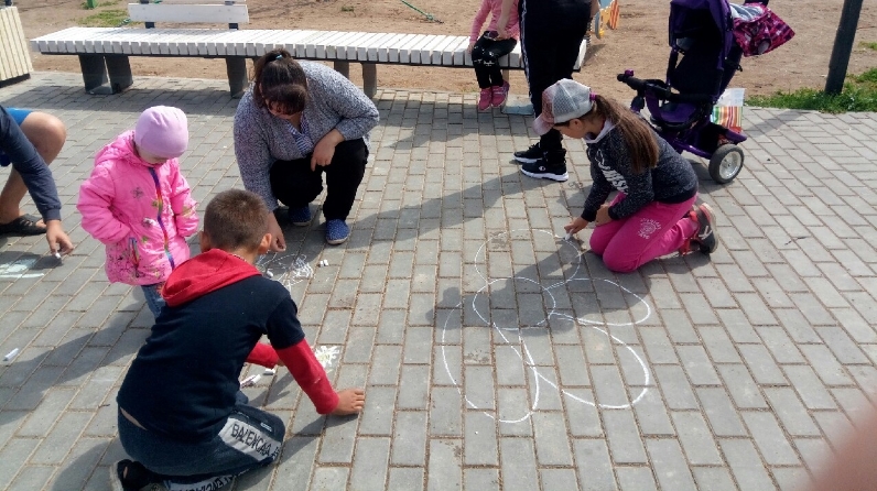 Төсле акбур, асфальт һәм бетмәс-төкәнмәс балалар фантазиясе... Тротуарны күркәм болынга әверелдерергә теләгән Ютазы балалары арсеналында менә шундый чаралар бар иде. Кулларына төрле төстәге акбур тоткан малайлар һәм кызлар асфальтны үз илһам җимешләре белән бизәүче рәссамнарга әверелде. Чара Гаилә , мәхәббәт һәм тугрылык көненә багышланган иде. Рәссамнар ролендә барлык теләүчеләр чыгыш ясый алды. Нигездә, бәйге кече яшьтәге мәктәп укучыларын җәлеп итте, әмма биредә бөтенләй кечкенәләр дә бар иде. Асфальтта рәсем ясау - ул күңелле шөгыль генә түгел, бу- иҗат та, әйләнә-тирә дөньяны танып белү дә.