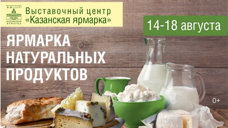 Татарстан Республикасы Авыл хуҗалыгы һәм азык-төлек министрлыгы 2019 елның 14 – 18 август көннәрендә “Казан ярминкәсе” күргәзмә үзәге территориясендә узачак азык-төлек продуктларының беренче махсуслаштырылган «Натураль продуктлар ярминкәсе» күргәзмәсендә катнашырга чакыра.