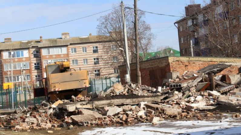 Ниһаять, боз урыныннан кузгалды. Мәктәп территориясендәге хәрабәләр бүген район хакимияте көче белән сүтелә башлады.