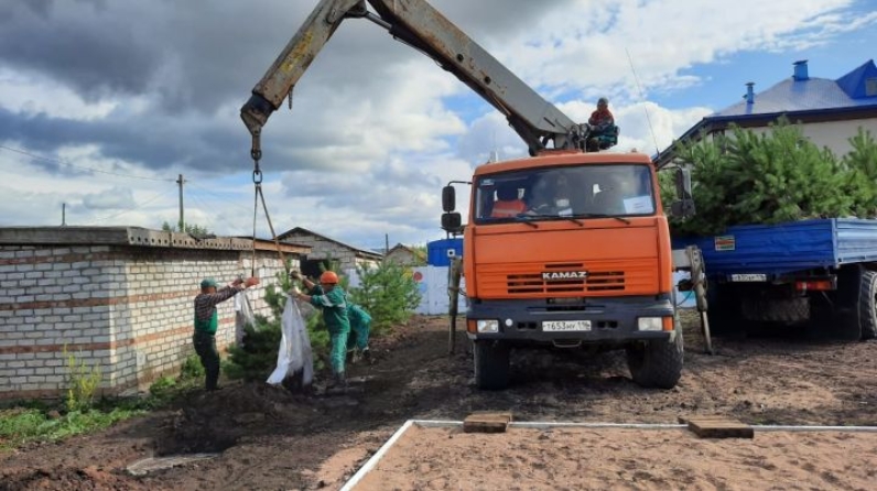 Урыссу бистәсенең Пушкин урамындагы 105 санлы йорт алды территориясендә Татарстан нефтьчеләре көче белән 21 төп чыршы утыртылды. Инде моңа кадәр язып чыкканча, быел бу ишек алды “Безнең ишегалды” Президент программасы буенча капиталь ремонтлана. Биредә ял һәм спорт зонасы булачак. Әлеге төзекләндерү чараларына өстәп, республика нефтьчеләре дә үз өлешләрен кертте – элекке “Тирәкләр” мәйдачыгы тирәли яшь агачлар утыртты.