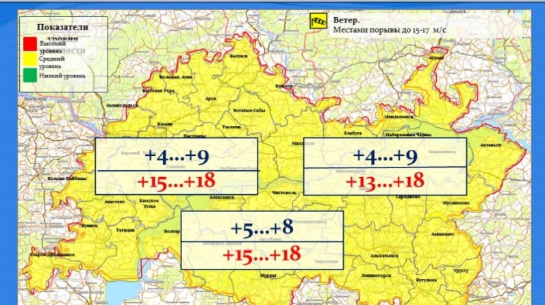 "Татарстан Республикасы Гидрометеорология һәм әйләнә - тирә мохитне күзәтү идарәсе" ФДБУ мәгълүматлары буенча, 19 августка Татарстан Республикасында начар метеорологик күренешләр көтелә: