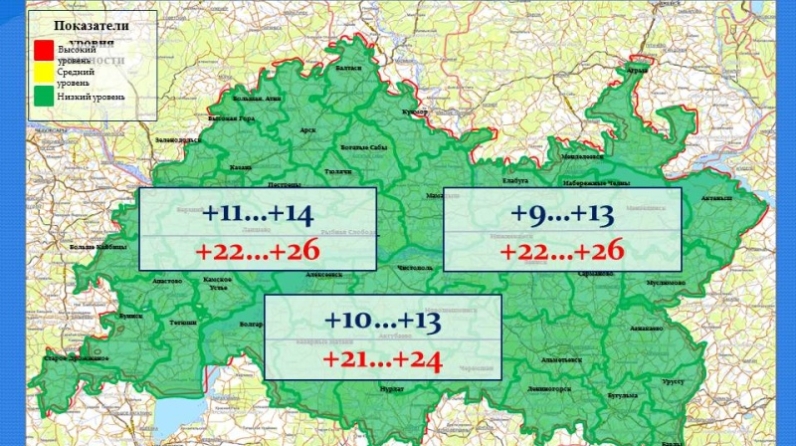 «Татарстан Республикасы Гидрометеорология һәм әйләнә-тирә мохитне күзәтү идарәсе» ФДБУ мәгълүматлары буенча, 25 августка Татарстан Республикасында начар метеорологик күренешләр көтелми: