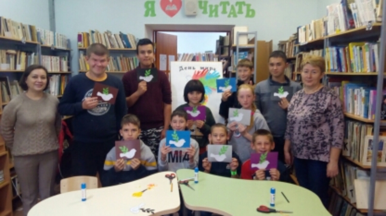 Китапханәчеләр балаларны бәйрәмнең барлыкка килү тарихы һәм бу көн символы белән таныштырдылар. Шулай ук балалар үзләрен иҗади яктан да күрсәтте: укучылар белән бергә тынычлык теләү максатында, күгәрченнәр белән открыткалар ясадылар. Плакатта сурәтләнгән күгәрченнәргә балалар куллар сурәтләрен беркетеп, планетабыз төшерелгән рәсемне чәчәкләр белән әйләндереп алдылар.