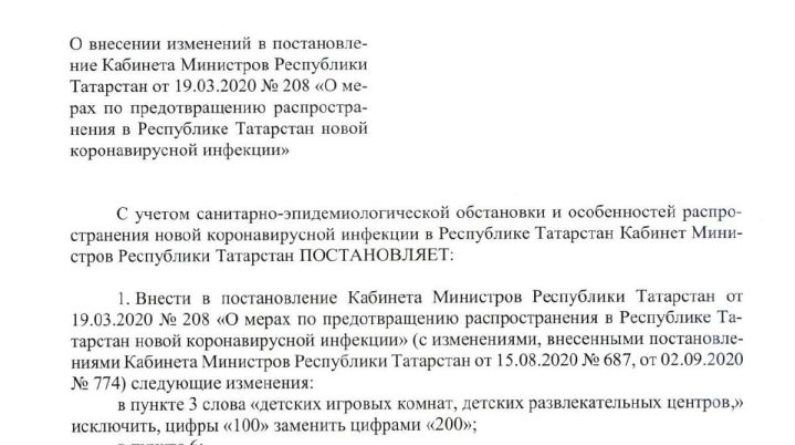 Тулырак мәгълүмат: http://yutazy.ru/news/obschestvo/s-21-sentyabrya-v-tatarstane-snimaetsya-rad-ogranicheniy-vvedennykh-iz-za-rasprostraneniya-koronavirusnoy-infektsii