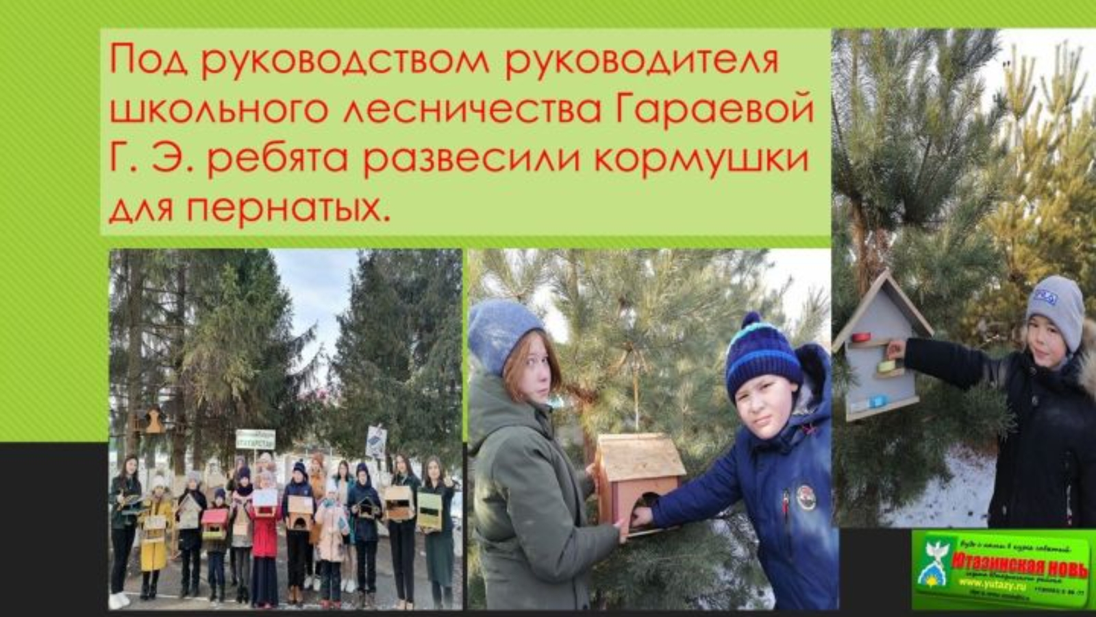 Салкыннар башлану белән песнәкләр, күгәрченнәр, чыпчыклар һәм башка күп кенә канатлы дусларыбыз туеныр азык эзли башлый. Шуңа күрә мәктәп урманчылыгы җитәкчесе Г.Э. Гәрәева җитәкчелегендә укучылар кошлар өчен җимлекләр элделәр.