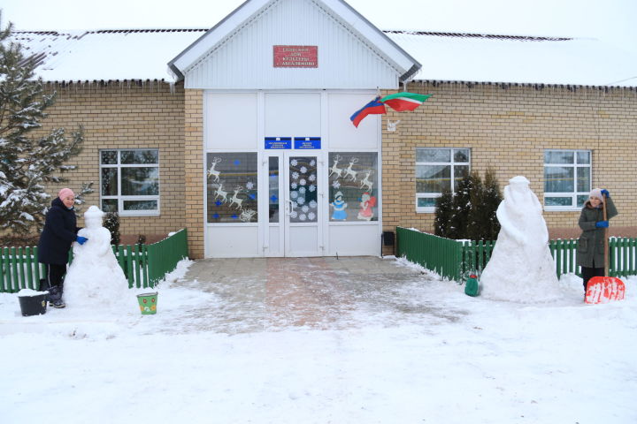 Әбсәләм авылы мәдәният йорты хезмәткәрләрен кичә Кыш бабай белән Кар кызы ясаганда очраттык. Бүген әлеге күңелле эшкә Иске Урыссу авылы мәдәният йорты хезмәткәрләре дә керешкән. Авыл клубы алдында чанага җигелгән болан инде барлыкка да килгән. Хатын-кызлар кар сыннары ясый иде.