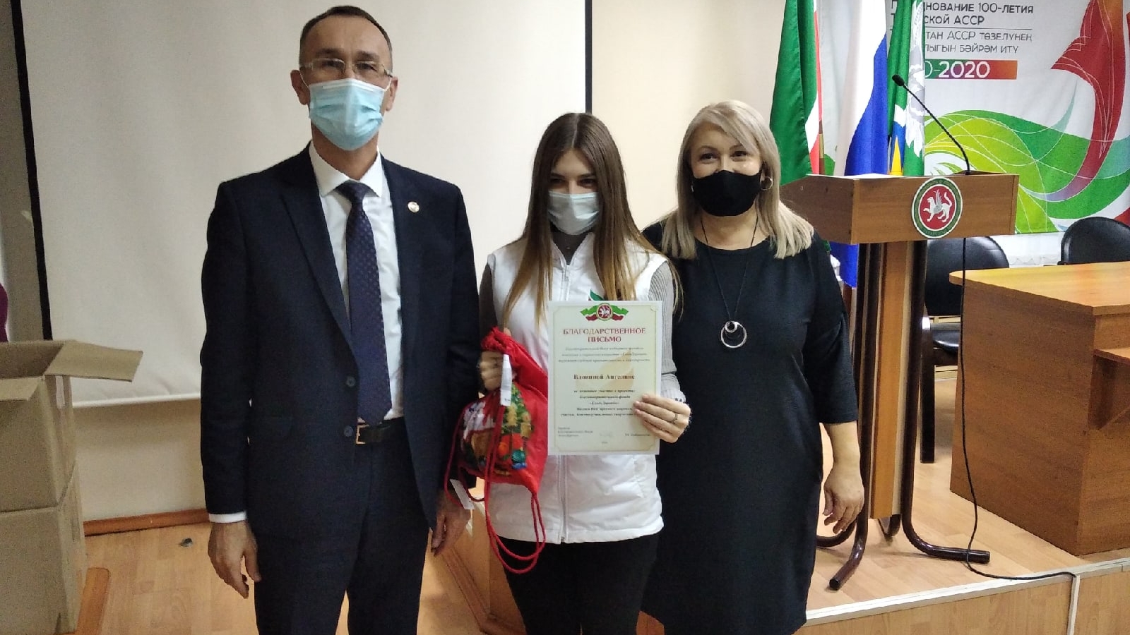 Район башлыгы Аяз Шәфигуллин һәм Рузилә Шәймәрданова Яңа ел алдыннан Фонд командасында эшләүче иң актив волонтерларга Яңа ел бүләкләре һәм Рәхмәт хатлары тапшырдылар. Битараф булмаган малайлар һәм кызлар пандемия вакытында картларга, күп балалы гаиләләргә ярдәм иттеләр, азык-төлек, дарулар тараттылар. Шулай ук волонтерлар эшен оештырган педагоглар да Рәхмәт хатлары алды.