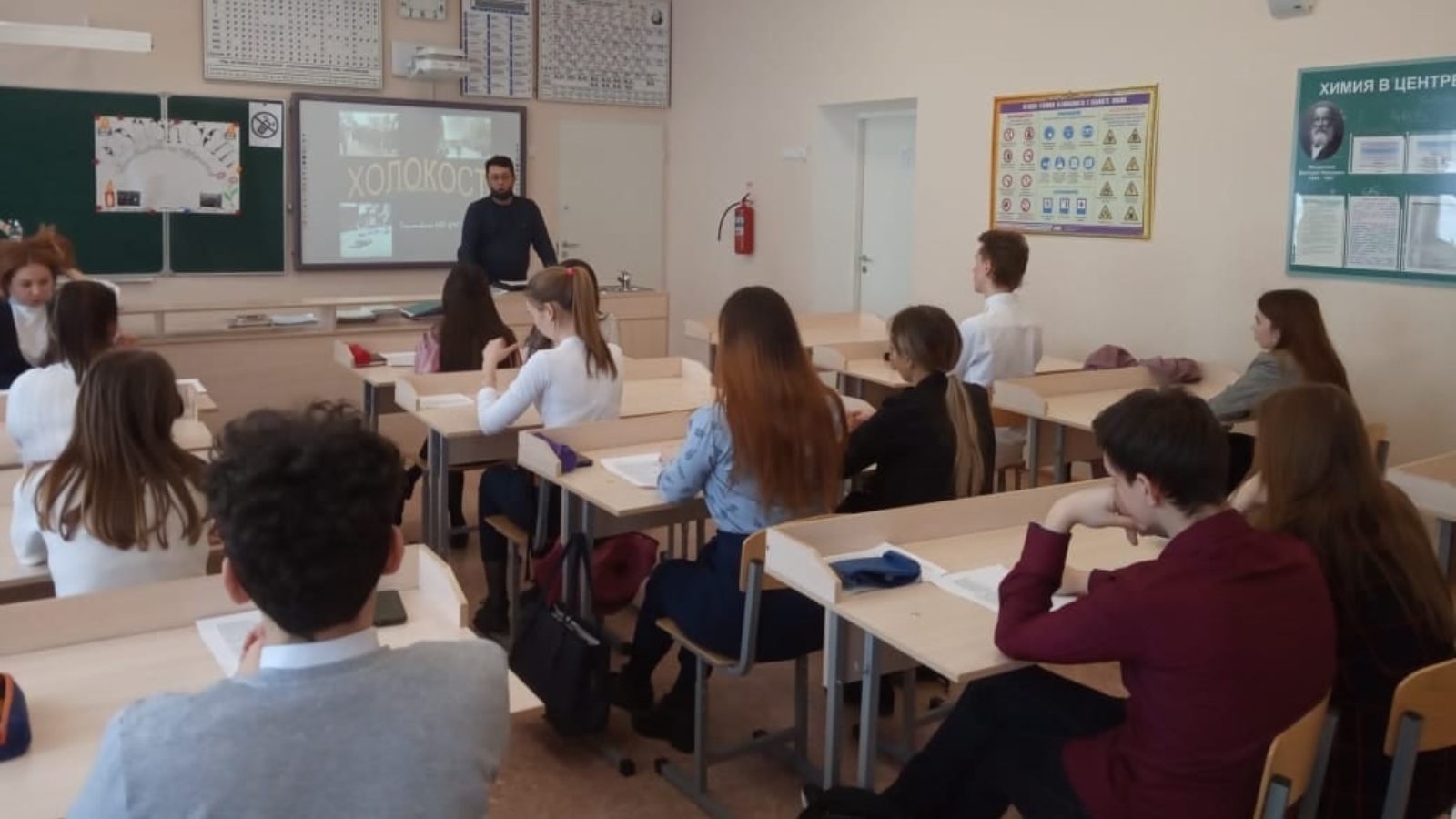 Урыссу гимназиясендә 11 сыйныф укучылары өчен "Форпост" үзәге директоры Руслан Нигъмәтуллин һәм яшьләр белән эшләү буенча белгеч Альбина Әхмәтова катнашында "Холокост корбаннарын искә алу" дигән чара үтте.
