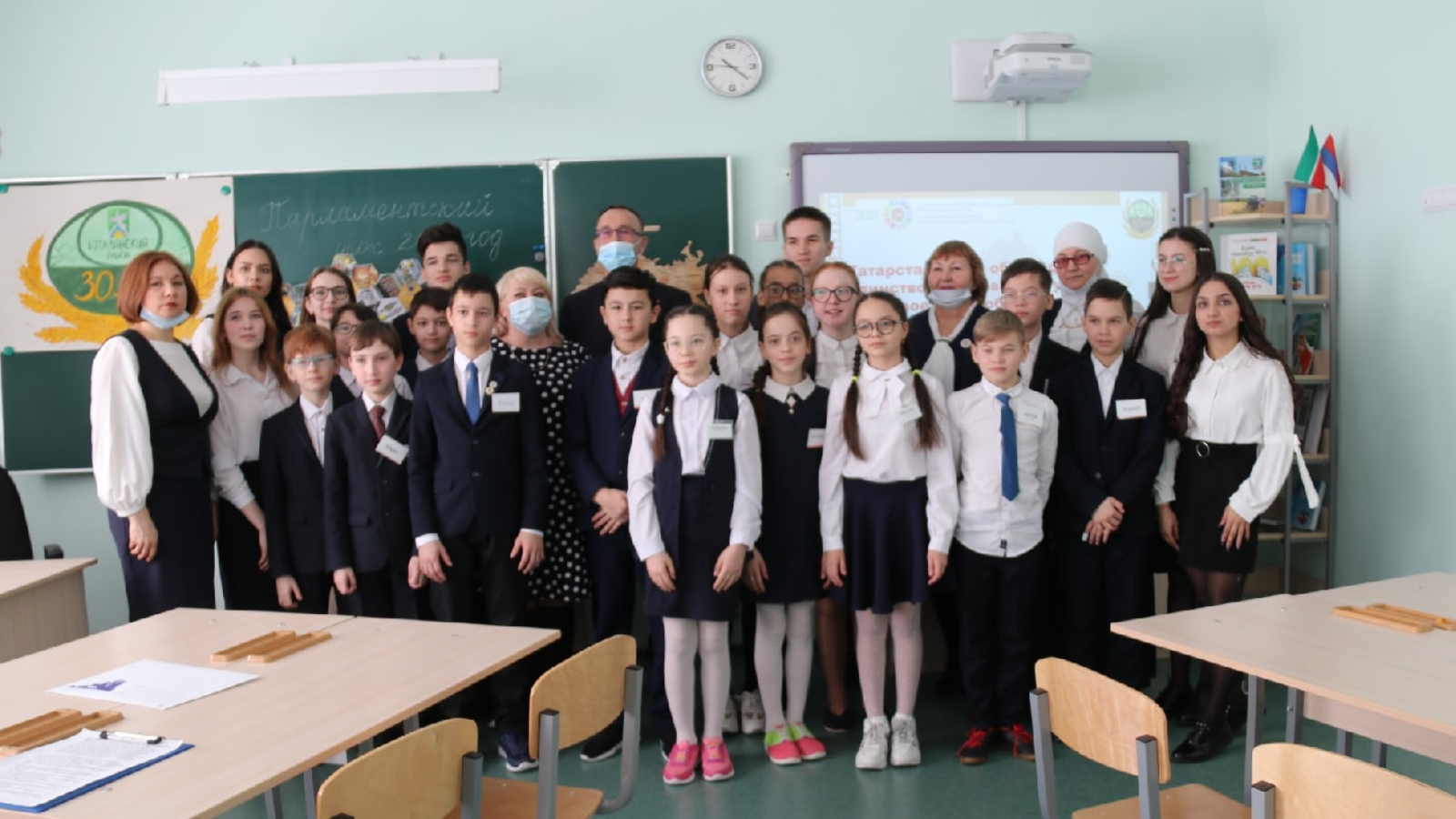 Дәрестә район башлыгы Аяз Шәфигуллин һәм мәгариф бүлеге начальнигы Гүзәл Гыйләҗева катнашты. Укучылар зур кызыксыну һәм горурлык белән Татарстан турында видеороликлар карадылар.