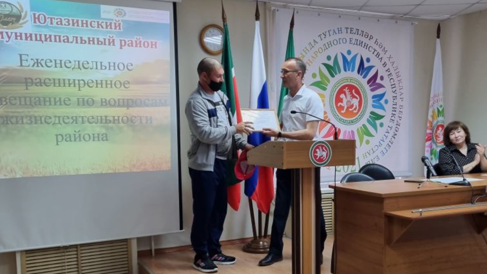 Атна саен үткәрелә торган оператив киңәшмәдә Ютазы районы башлыгы Аяз Шәфигуллин «Таң» ҖЧҖ хезмәткәре Илгиз Ильясовка авыл җирлегендә торак төзү турында таныклык тапшырды. Илгиз Зиннур улы Татарстан Республикасы Ютазы муниципаль районының Урыссу авыл җирлегендә индивидуаль торак йорт сатып алу өчен 1 827 000 сум күләмендә акча түләнүе турындагы таныклыкны Россия Федерациясенең «Авыл территорияләрен комплекслы үстерү» дәүләт программасы кысаларында алды.