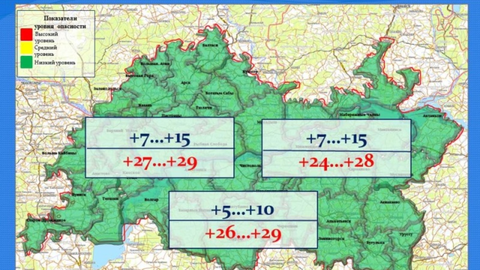 Алмашынучан болытлы һава. Явым-төшемсез. Җил төньяк-көнбатыштан, көнбатыштан, секундына 6-11 метр, урыны белән көчәйгәндә 15 метрга кадәр. Төнлә һаваның минималь температурасы +5..+15 градус, урыны белән +15 градуска кадәр, максималь һава температурасы көндез +24..+29˚.