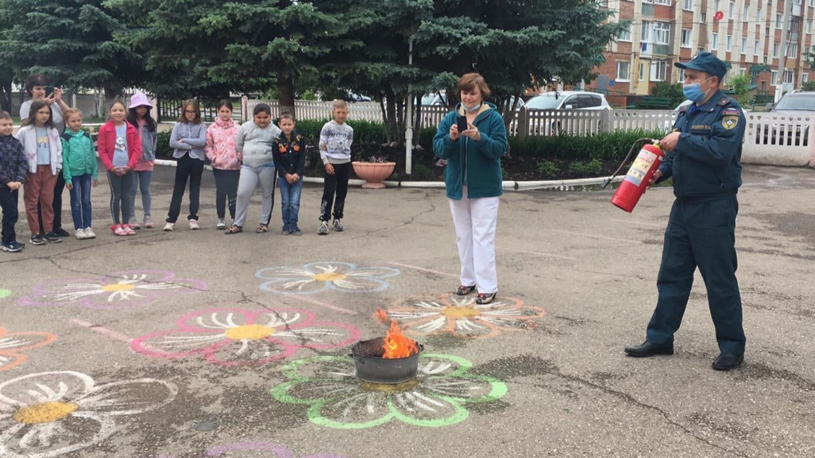 Теорияне тәмамлагач, балалар зур канәгатьлек белән практикага күчтеләр, анда аларга, барлык куркынычсызлык таләпләрен исәпкә алып, махсус аерылган учакны ничек сүндерергә икәнлеген күрсәттеләр.