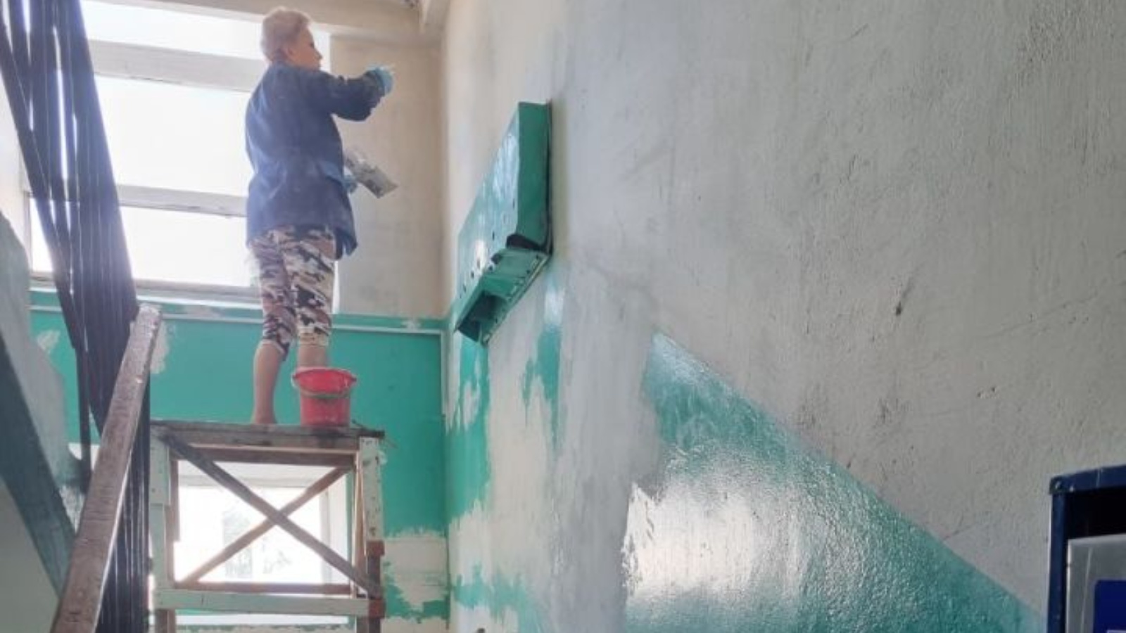 Урыссуда "Восток" ТМШда күпфатирлы йортлардагы подъездларны ремонтлауга керештеләр.