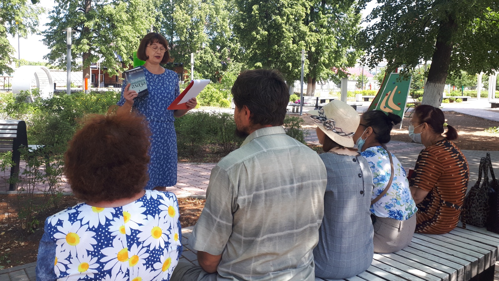 Кояшлы җәй көнендә «Гаилә» паркында Үзәк китапханә хезмәткәрләре, китап укуны алга этәрү максатыннан, «Бөтен чорлар китаплары» дип исемләнгән мәгълүмат сәгате үткәрделәр. Безнең «китап сөючеләр эскәмиясендә” төрле жанрдагы китаплар - детективлар, романнар, заманча проза урнаштырылды. Китапханәче Рузилә Гәрәева «Җәйге уку залында» тәкъдим ителгән китаплар турында сөйләде. Теләүчеләр рус һәм чит ил язучыларының әсәрләре буенча «Әдәби викторина»да катнаштылар. Әлеге чара барлык катнашучыларга да уңай эмоцияләр, күтәренке кәеф өстәде.