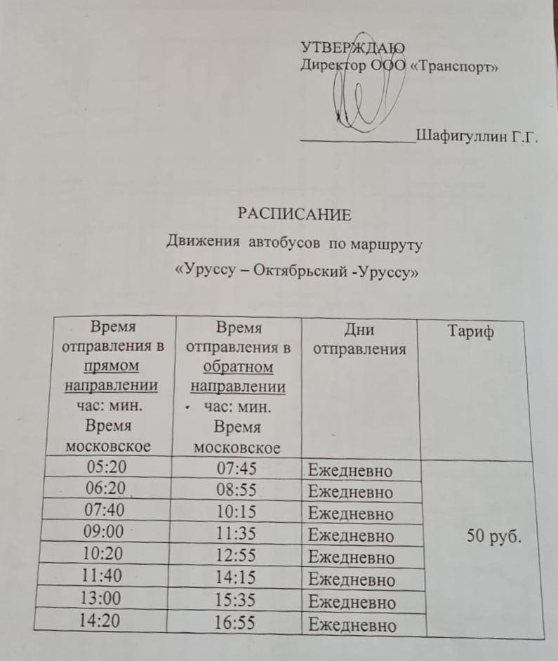 Сезгә 2021 елның 23 августыннан "Урыссу - Октябрьский - Урыссу" автобус маршруты яңартылуы турында хәбәр итәбез.