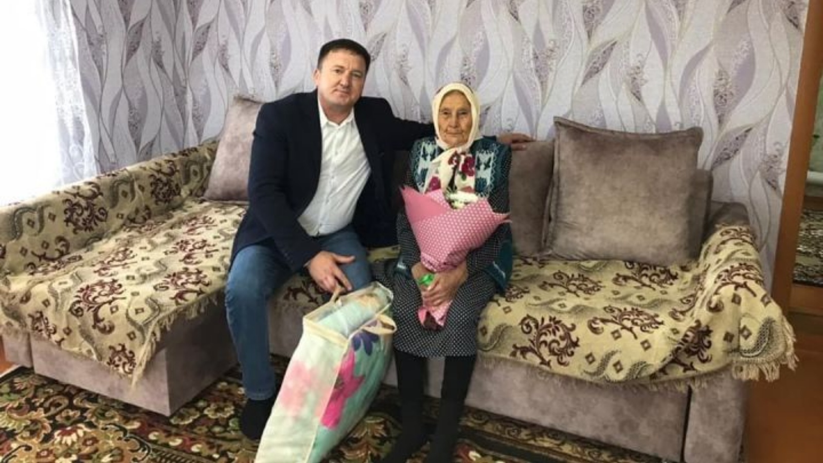 Күркәм традиция буенча Җәмгыя Сәлимшинаны Ютазы районы башлыгы исеменнән юбилее белән котларга район башлыгы урынбасары Закуан Ильясов, Димтамак авыл җирлеге башлыгы Җәлил Хөснетдинов килгән иде.