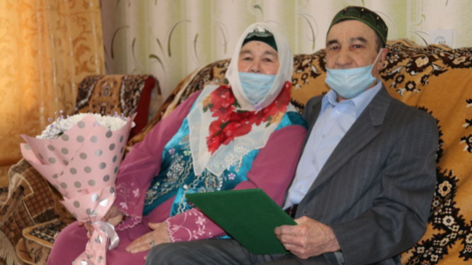 Юбилярларны котларга район башкарма комитеты җитәкчесенең социаль мәсьәләләр буенча урынбасары Сергей Рузанов һәм ЗАГС бүлеге җитәкчесе Гүзәлия Фәхертдинова килгән иде. Алар юбилярларга изге теләкләр юллап, чәчәк бәйләмнәре һәм истәлекле бүләк тапшырдылар.