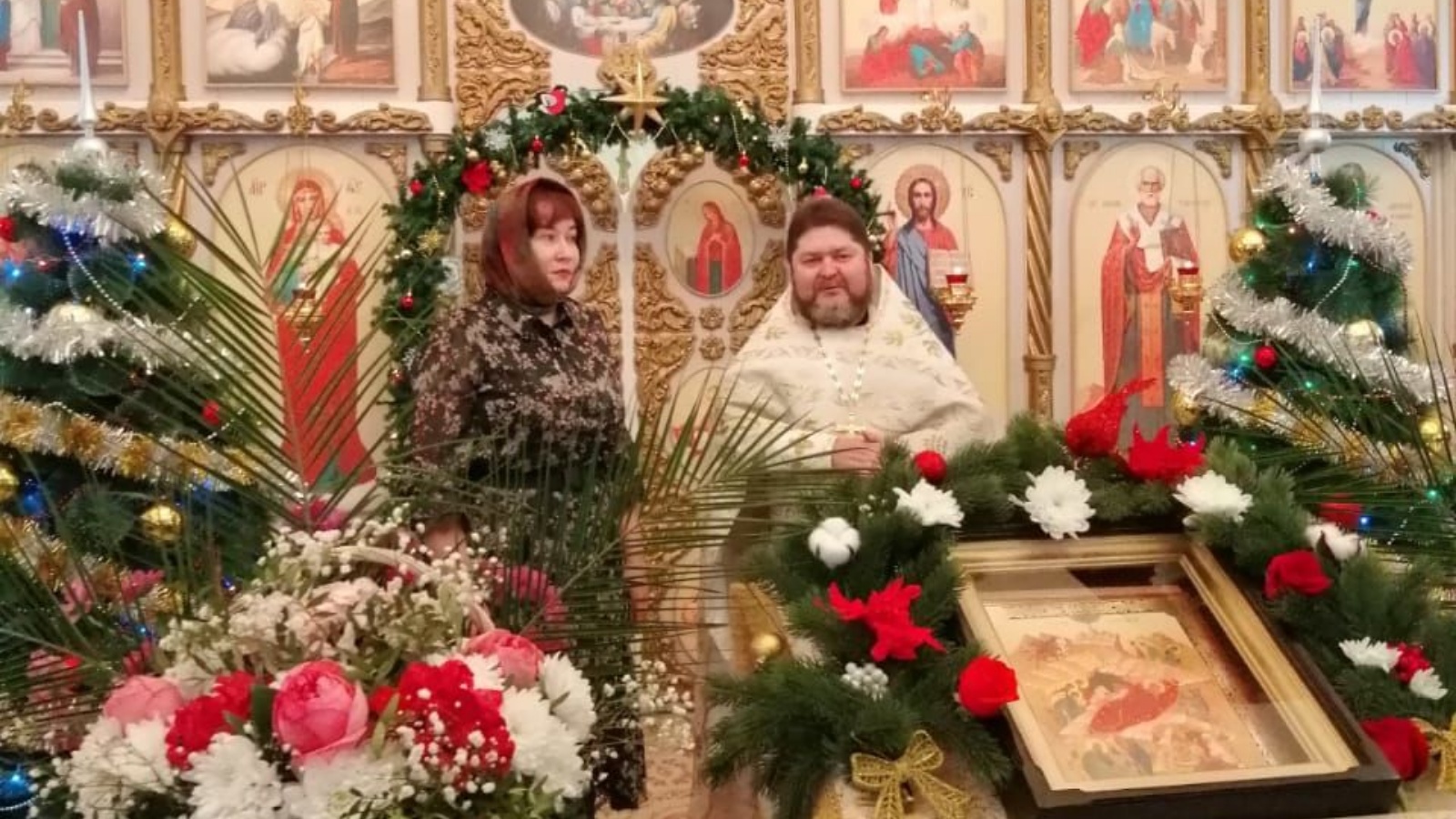 Изге Николай чиркәве рухание протоиерей Роман барысын да төп христиан бәйрәме белән котлады һәм Гайса Мәсих туганнан соң, христиан дөньясында православие дине ныгуын ассызыклады. Бәйрәм кичәсенә килүчеләр арасында район башкарма комитеты җитәкчесенең социаль мәсьәләләр буенча урынбасары Сергей Рузанов, район Советы аппараты җитәкчесе Наталья Майорова да бар иде.