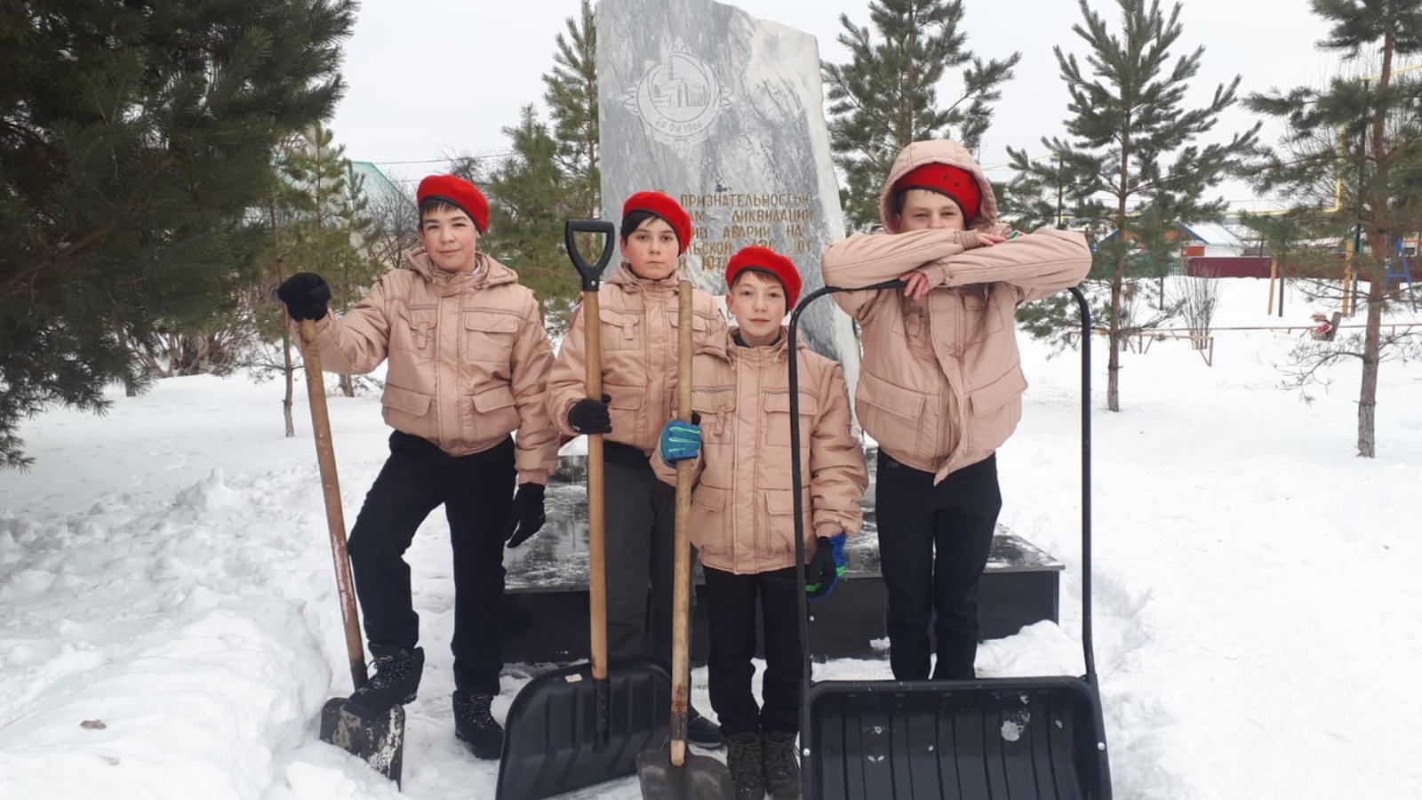 Урыссудагы 2 санлы мәктәпнең Л.Р. Шәрифуллина җитәкчелегендә "Патриот" яшармиячеләр отряды көрәкләр һәм себеркеләр белән коралланып, Чернобыль АЭСындагы авария ликвидаторларына куелган һәйкәл янындагы территорияне кардан чистартты.