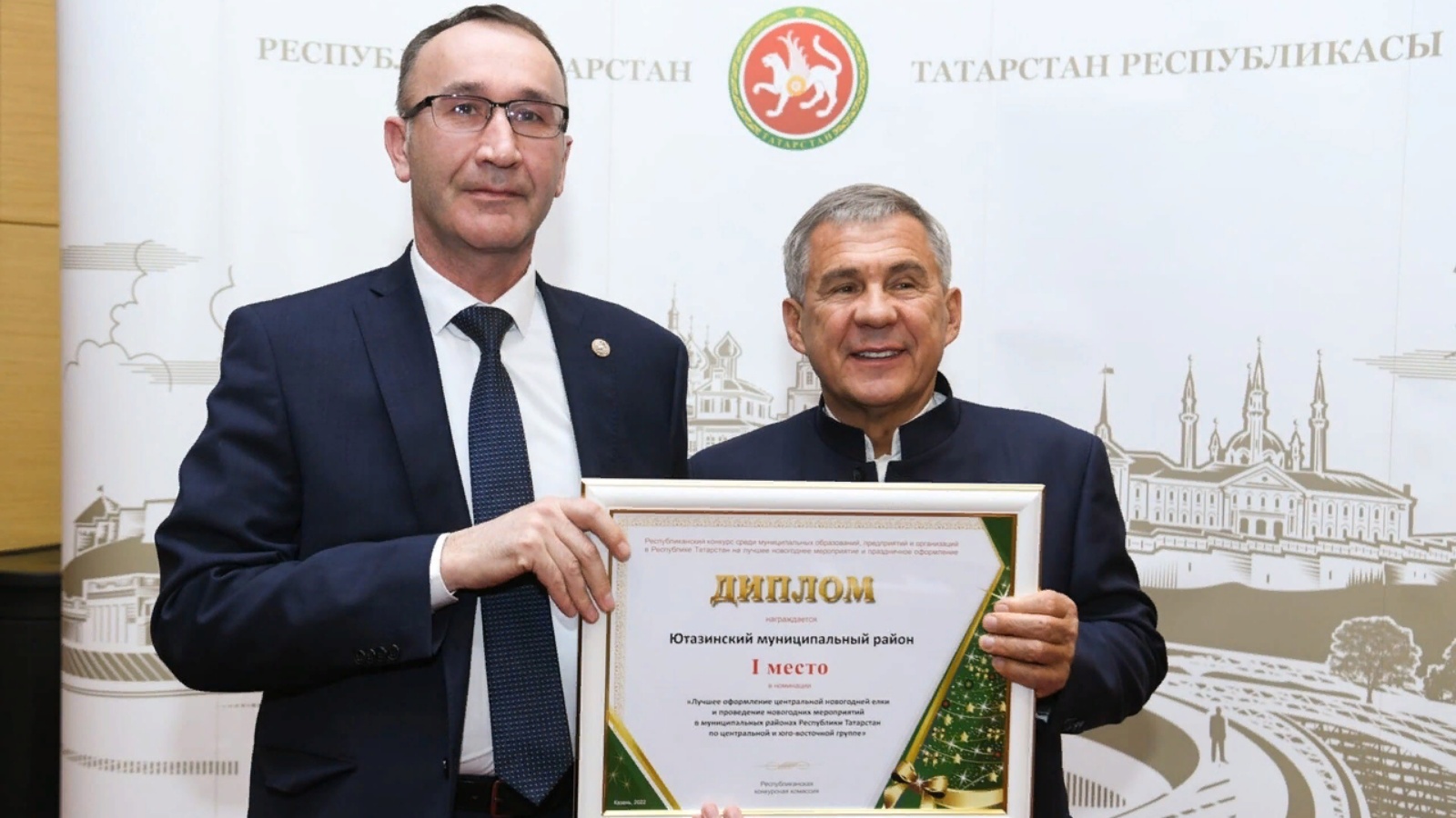 Административ үзәкләре - район әһәмиятендәге шәһәрләр һәм шәһәр тибындагы поселоклар булган муниципаль берәмлекләр арасында «Үзәктәге Яңа ел чыршысын иң яхшы бизәү һәм Татарстан Республикасы муниципаль районнарында үзәк һәм көньяк-көнчыгыш төркем буенча Яңа ел чыршы бәйрәмен уздыру» номинациясендә Ютазы муниципаль районы беренче урынны алды. Район җитәкчелеге Яңа ел бизәлешендә катнашкан предприятиеләргә, оешмаларга, бюджет учреждениеләренә, шәхси эшмәкәрләргә һәм район халкына зур рәхмәт белдерә. Бу безнең уртак җиңүебез!!!