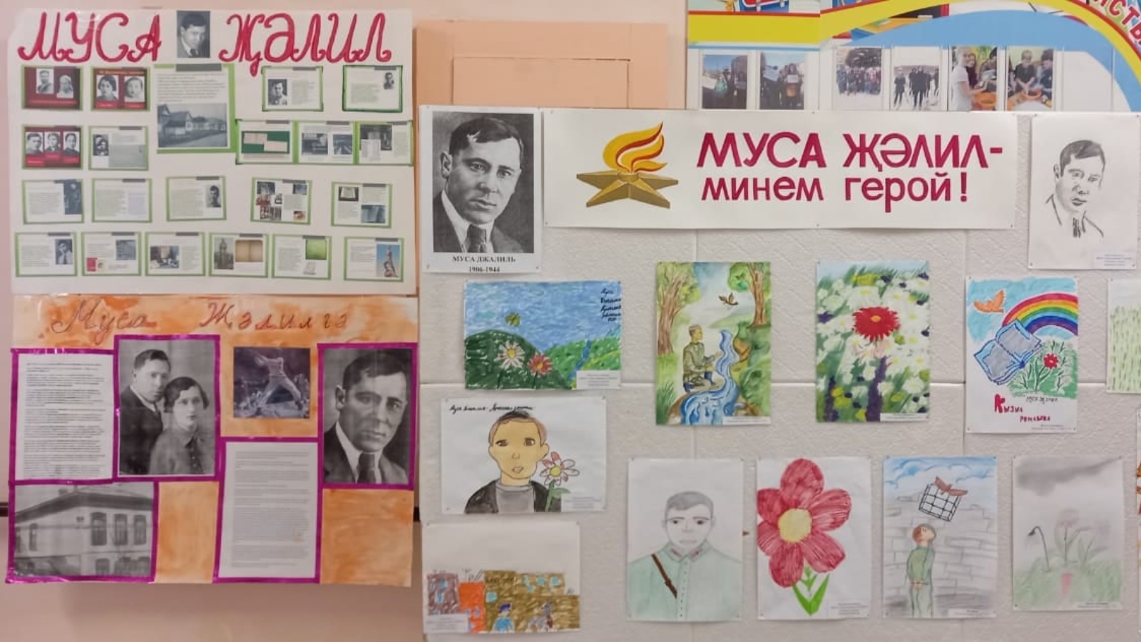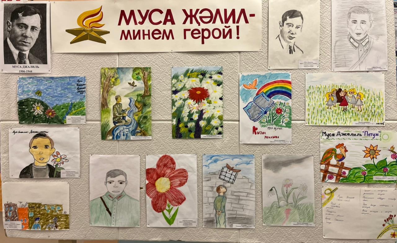 Татар теле һәм әдәбияты декадасы кысаларында, каһарман-шагыйрь Муса Җәлилнең үлмәс шигырьләрен үсеп килүче буынга җиткерү максатыннан, мәктәбебездә "Минем герой-Муса Җәлил"дип исемләнгән рәсем конкурсы уздырылды.