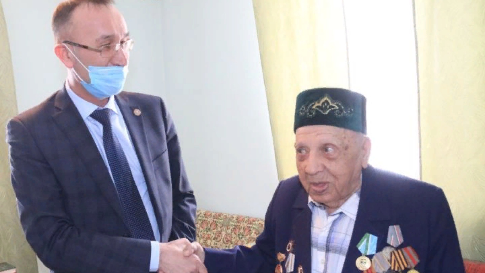 Ватанны саклаучылар көне алдыннан Ютазы муниципаль районы башлыгы Аяз Шәфигуллин Миңнебай Миңнекәевның өендә булды һәм ветеранны 23 февраль – Ватанны саклаучылар көне белән котлады.