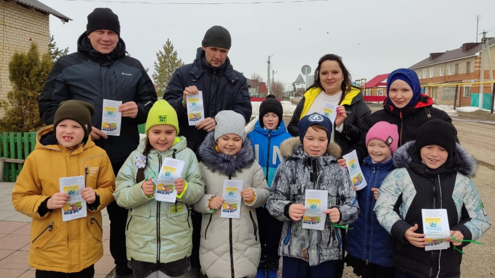 Балалар авыл халкына сәламәт яшәү рәвеше турында мәгълүмати буклетлар тараттылар һәм акция символы буларак яшел тасмалар бәйләделәр.
