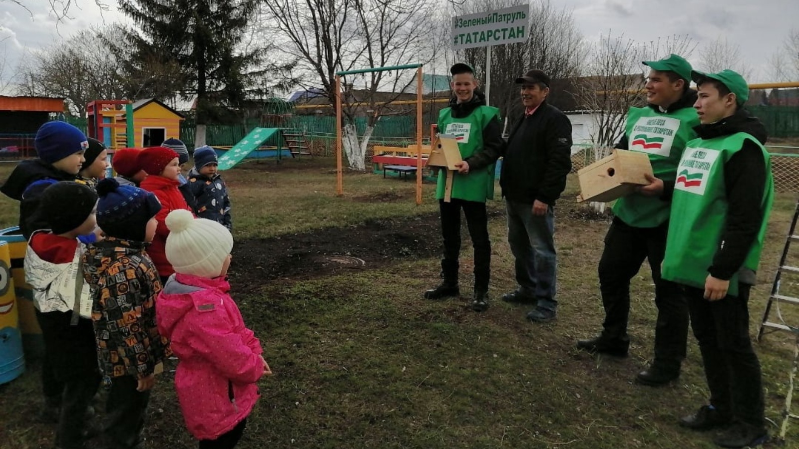Экологик сәгать кысаларында "Яшел патруль" мәктәп урманчылыгы активистлары Ютазы авылының "Кояшкай" балалар бакчасы нәниләре белән язгы чорда кошлар турында (аларның җылы яклардан кайтуы, оя корулары, бала чыгарулары) әңгәмә үткәрделәр. Активистлар кошларга ярдәм итәргә, алар турында кайгыртырга кирәк булуы турында сөйләделәр.