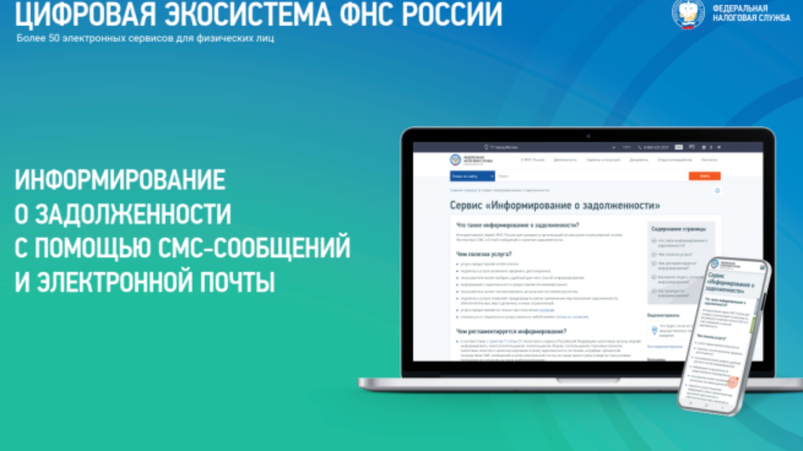 Мондый мәгълүмат форматы салым түләүчегә мәҗбүри түләүләр түләү буенча исәп-хисапларның агымдагы торышын үз вакытында күзәтеп торырга һәм пенялар исәпләүгә юл куймаска мөмкинлек бирә. Смс-һәм e-mail-мәгълүмат бирүнең өстенлеге шулай ук мәгълүматларның актуальлеге булып тора, сервис агымдагы датага дөрес мәгълүмат бирә.